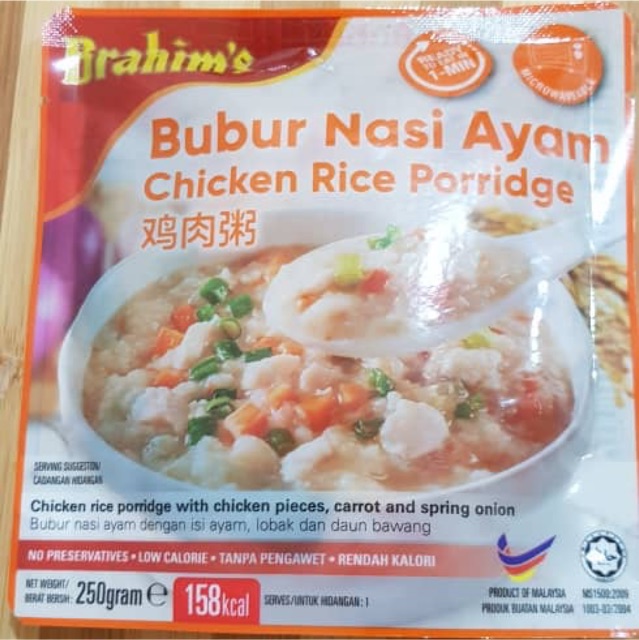 Bubur kosong (masak seperti biasa) ayam air rebusan ayam minyak bijan lada putih lada hitam. Bubur nasi biasanya dinikmati sebagai menu sarapan pagi. Jumlah kalori nasi ayam dan cadangan aktiviti yang boleh dilakukan untuk membakar kalori selepas makan sepinggan nasi ayam. Makanan wajib bagi masyarakat indonesia ini mengandung banyak kalori. Untuk memastikan agar kebutuhan nilai gizi anda tercukupi dengan baik, sebaiknya anda melihat kadar kalori pada makanan/minuman yang anda konsumsi.